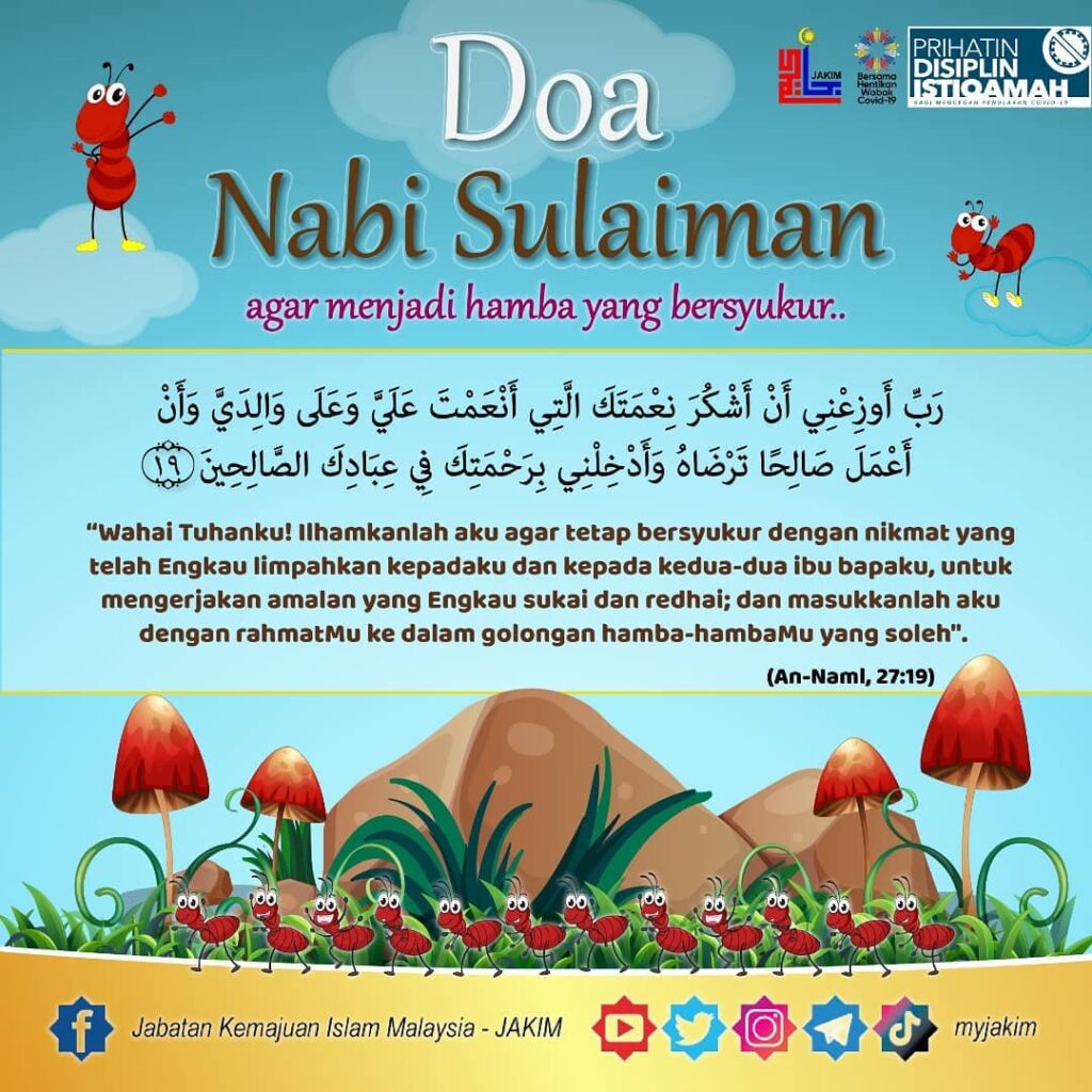 Selain itu terdapat juga doa nabi sulaiman yang selelau dibaca iaitu;