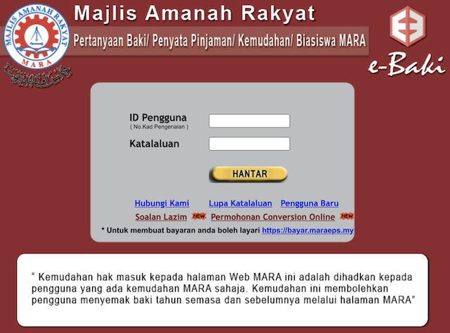 Untuk menyemak baki pinjaman pendidikan MARA: