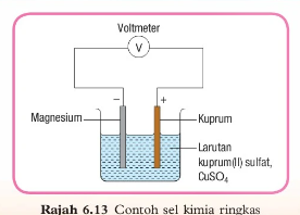- Magnesium berada lebih tinggi dalam siri elektrokimia berbanding kuprum, bermakna:
